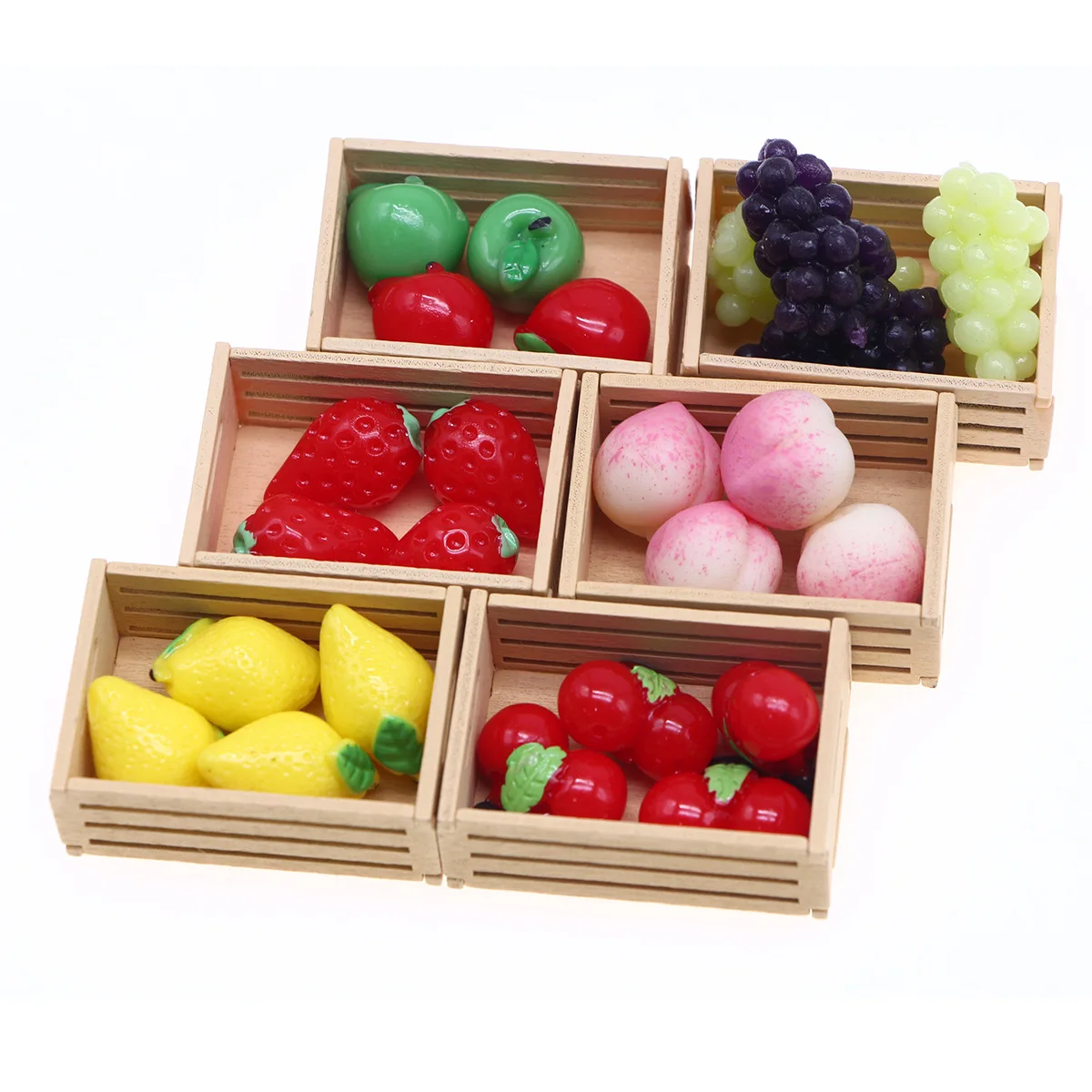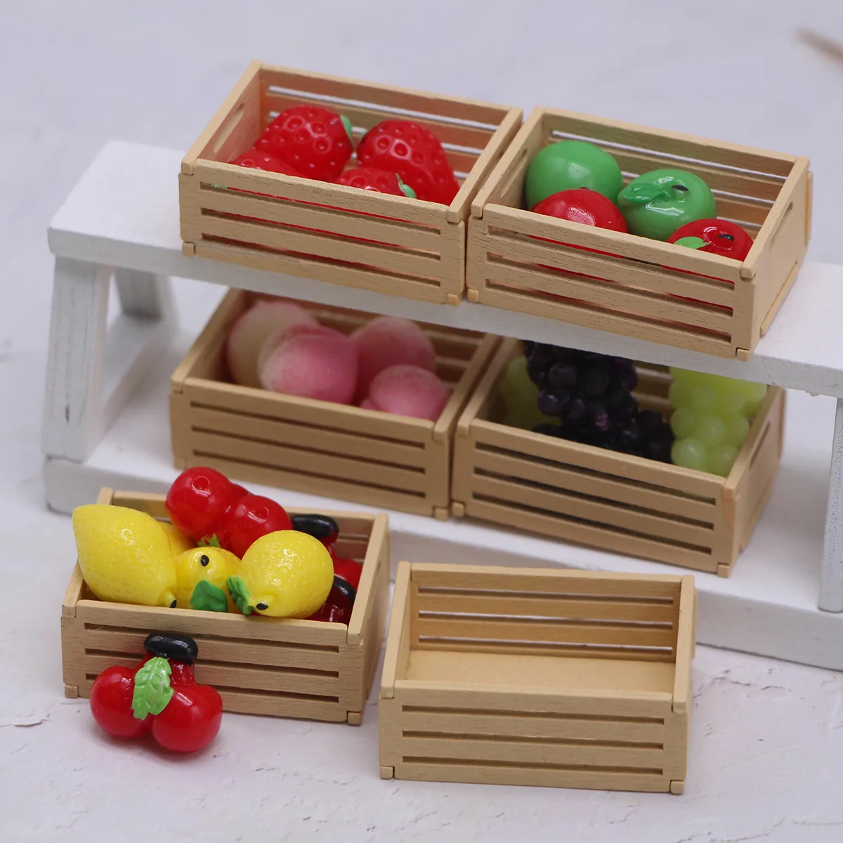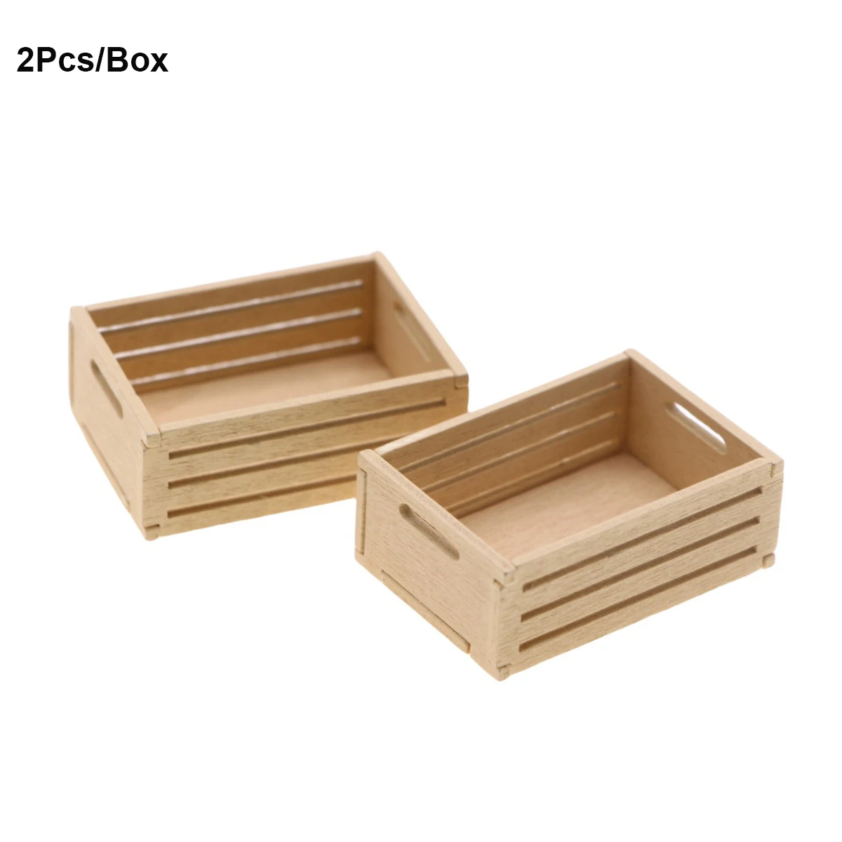 2Pc/Box Doll House Mini Wooden Fruit Frame ModelMiniature Food and Play Scene Small Cloth Storage and Storage Basket Decor