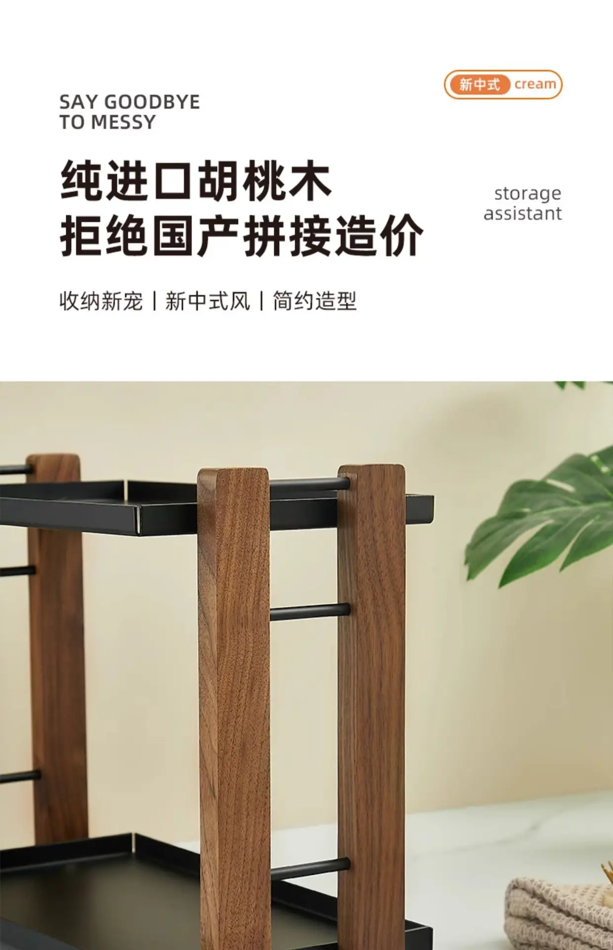 New Walnut Storage Rack 2-layer Bathroom Organization Sink Skincare Products Water Bottles Desktop Shelf Nordic Simple Holders