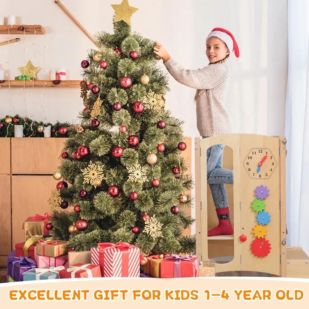 【 Promoting Sports Skills Development 】 The Children’s Tower features 5 Montessori activities, including clocks, gears, magnetic mazes, blackboards, and whiteboards. These activities aim to stimulate the development of your child’s motor skills while providing endless fun and learning opportunities.