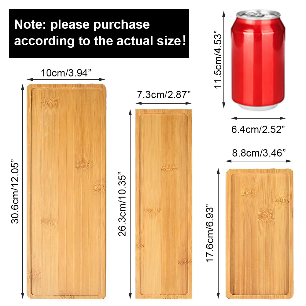 Versatile rectangular bamboo tray. This tray can be used as a plant flower pot tray saucer, a cup coaster; for holding bathroom accessories set; you can also use the decorative tray to display items like lipstick or rings. Perfect for keeping tables and countertops organized.!