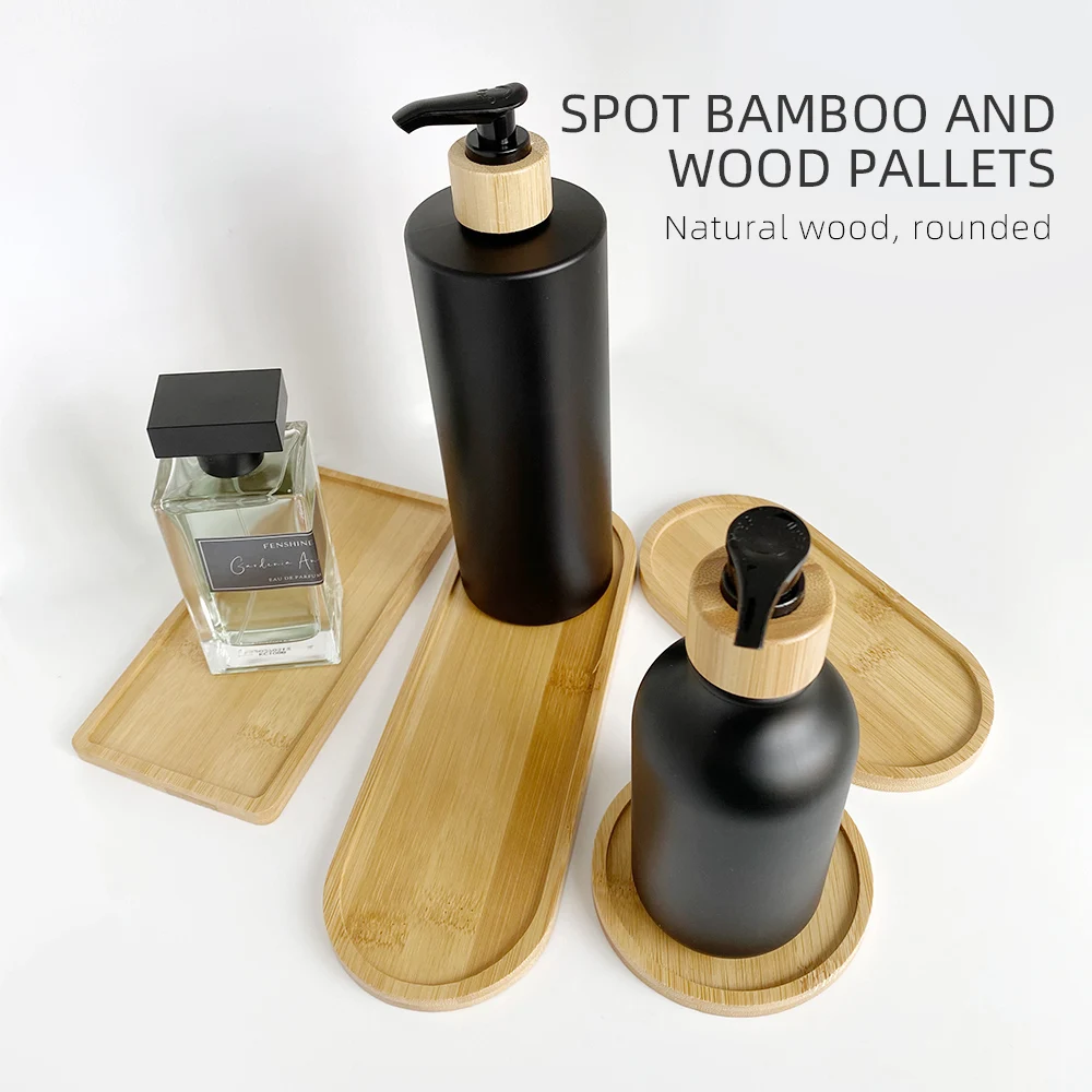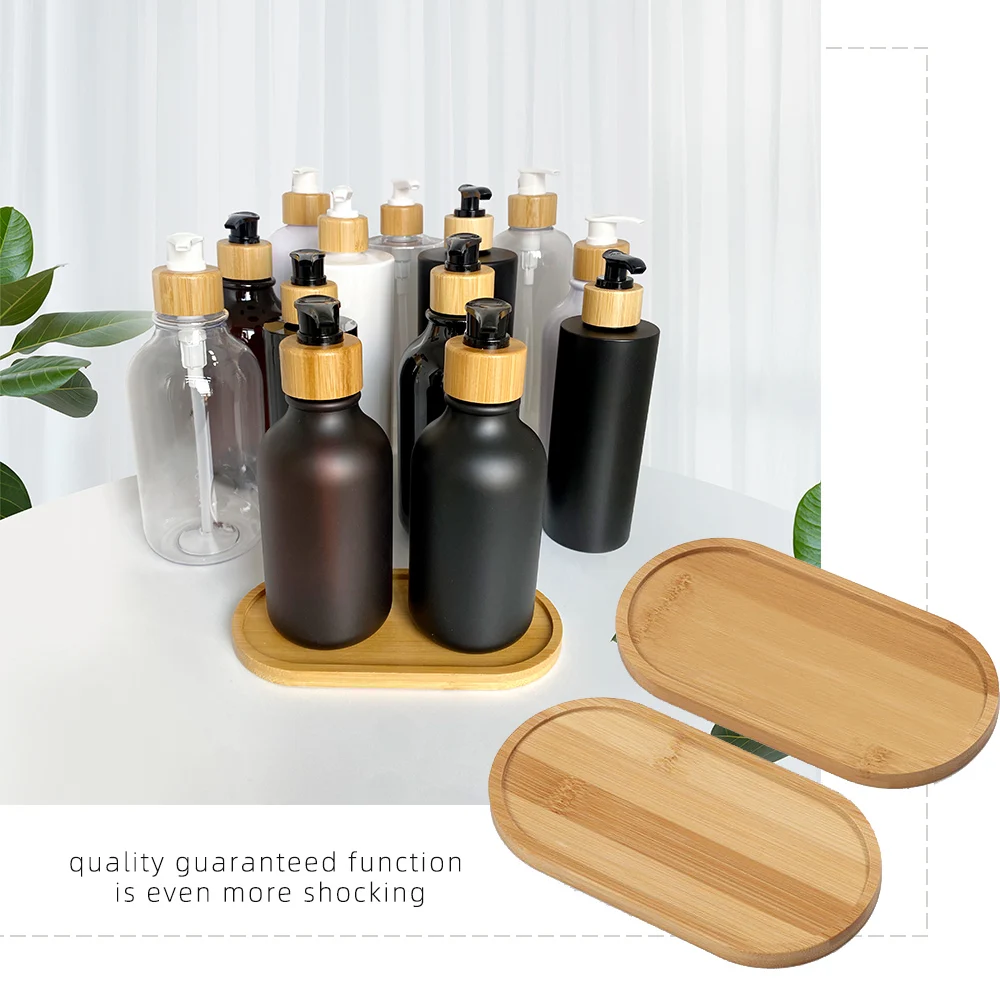 Household Storage Trays for Perfume Shower Shampoo Dispenser Container Stand Bamboo Wood Tray Bathroom Kitchen Pot Holder Decor