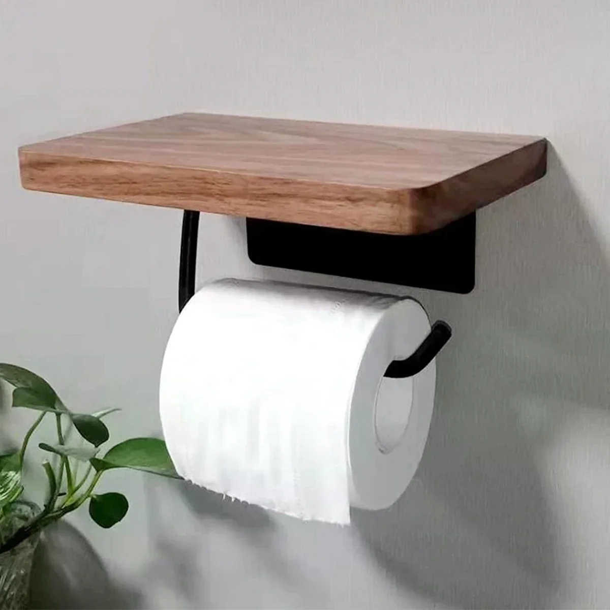 [Modern Design] The vintage and textured walnut shelves look classy. The black matte holder makes it easy to change paper towels. The ends of the paper towel holder arms can be bent upwards at a wide angle for easy installation on either side of the toilet. This modern design style is suitable for all kinds of home styles.