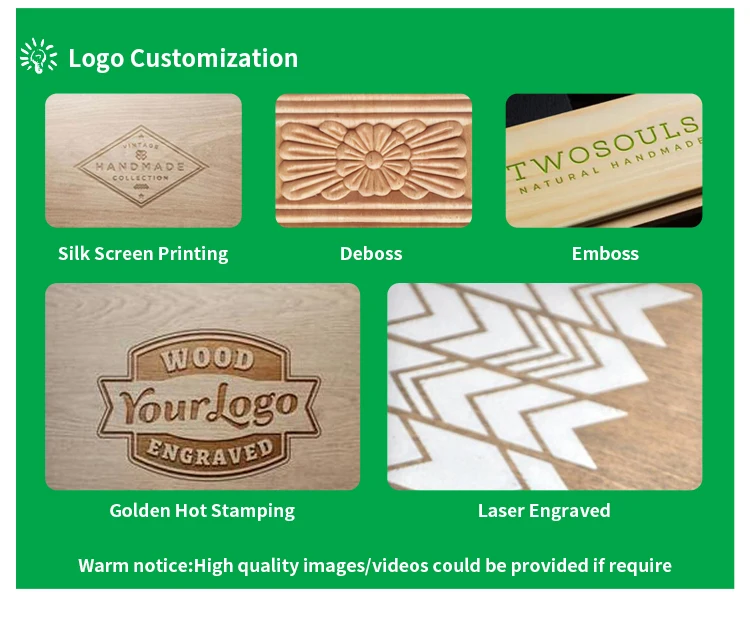 Logo | Hot stamping, embossed logo, UV coating, silk screen printing,engraving etc. |