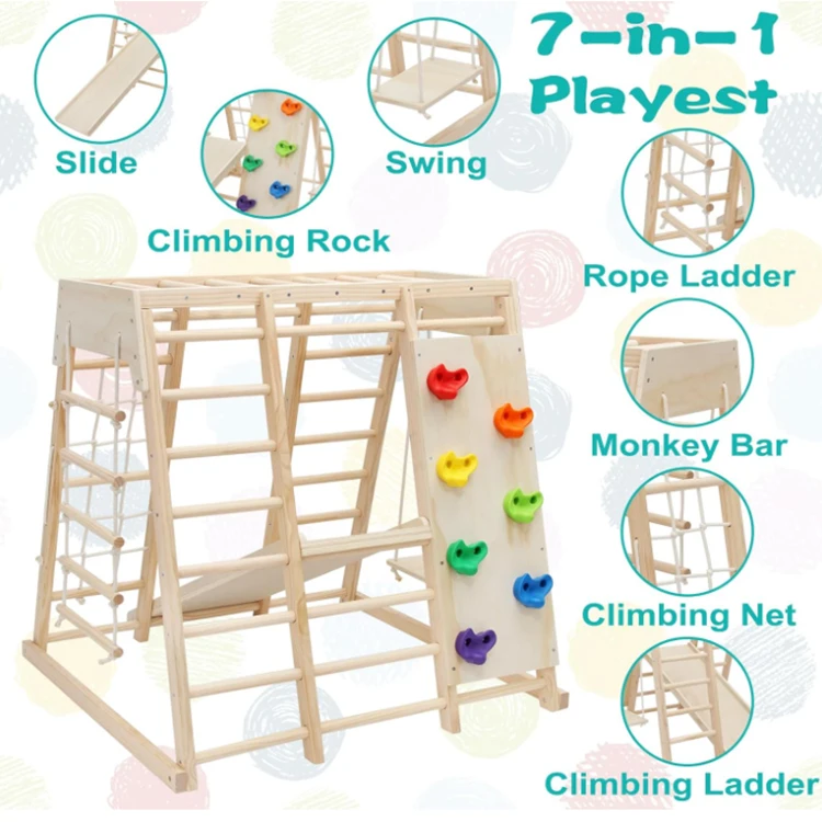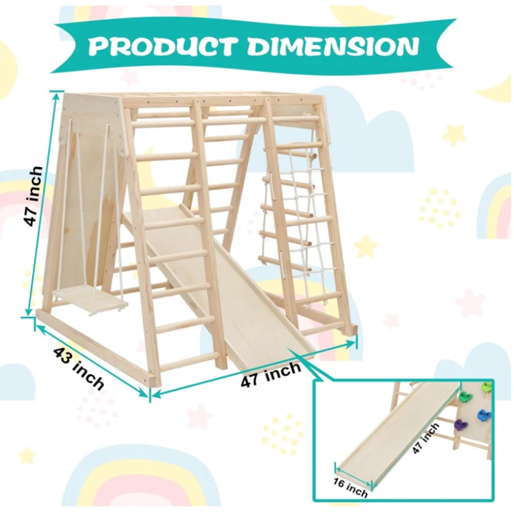 Product Name | Wooden Children Climbing Frame Indoor Toy Set With Wooden Slide Swing Rock Climbing |