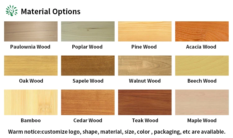 Material | Acacia Wood,Beech wood, Ebony,sandalwood,Walnut,Pine,Paulownia,Poplar,Birch,Oak,Bamboo,MDF,Plywood etc./ According to customers’requirements |